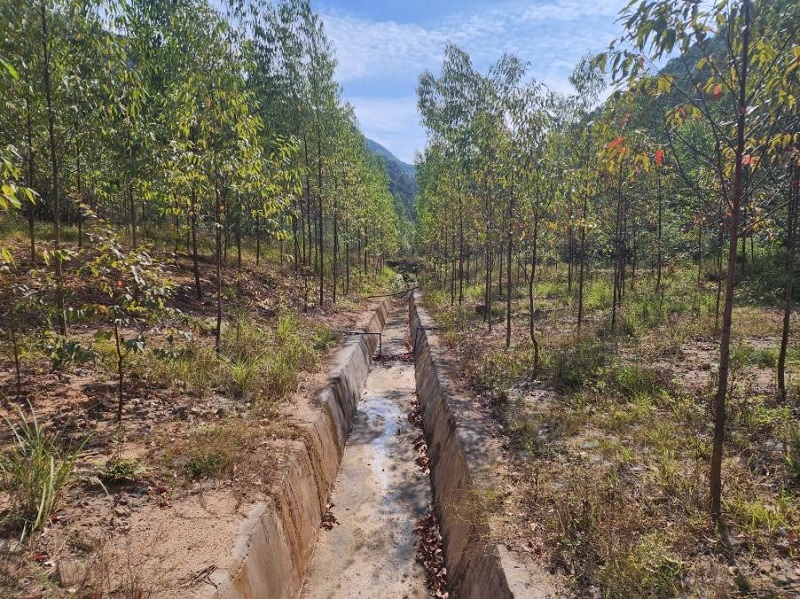在矿区的上游区域,山坡地面上修建了一条条导流渠,连接到低洼区的排水沟,形成一套地表水的导流沟渠引流系统,干净的地表水直接流到下游可供灌溉。识别污染成因后,项目实施单位分类施策、对症下药,系统实施地表水截引流,对露采区及周边池塘进行回填防渗改造,避免干净地表水直接经河道、露采区以及鱼塘等直接下渗补给地下斜井,减少酸性涌水的补给来源。