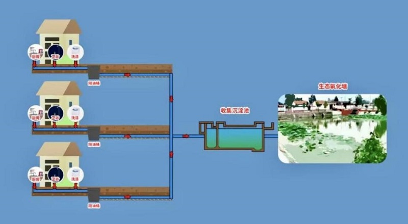 对于已完成改厕、黑灰分离的联户,黑水经户用化粪池无害化处理后进行还田资源化利用;联户产生的灰水经管网收集,隔油沉淀预处理后,进入表面流人工湿地,净化后可用于浇灌附近石榴树等。峄城区共14个村庄采用这种治理方式,平均建设投资10万元—30万元/村,服务约1.0万户。