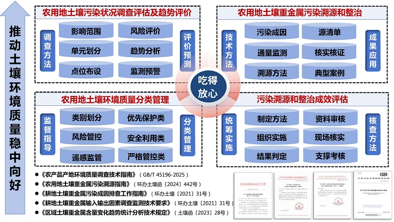 承担农用地土壤生态环境调查评估、污染溯源及大数据分析技术支持工作。承担相关标准、规范、指南研究拟订支持工作。