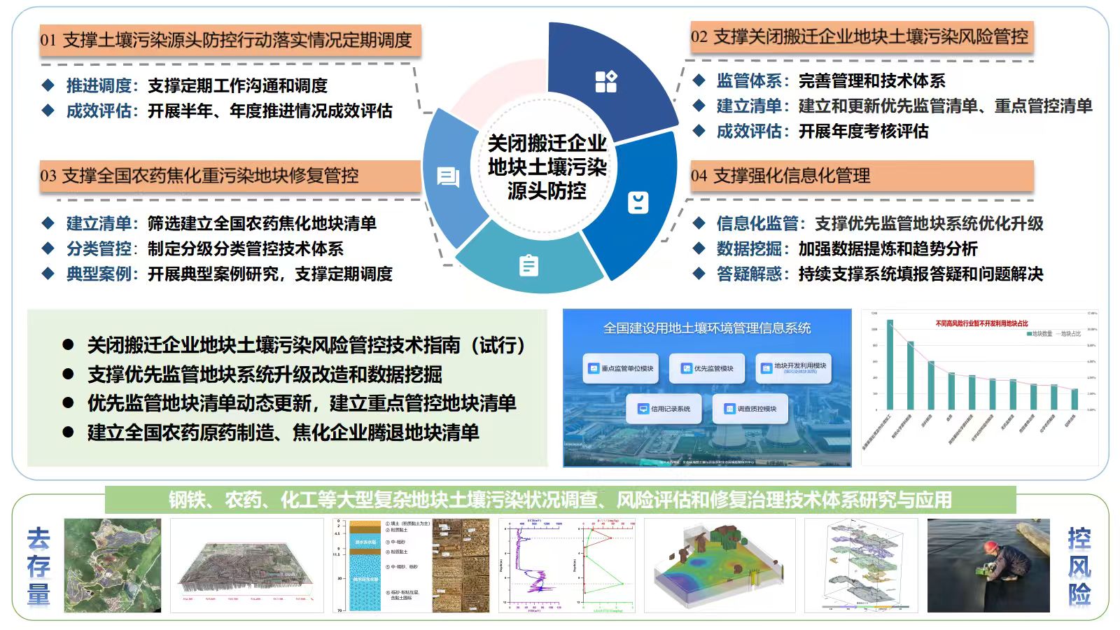 承担建设用地土壤污染源头防控政策研究相关工作。承担关闭搬迁暂不开发地块污染管控管理政策和技术研究支持工作。
