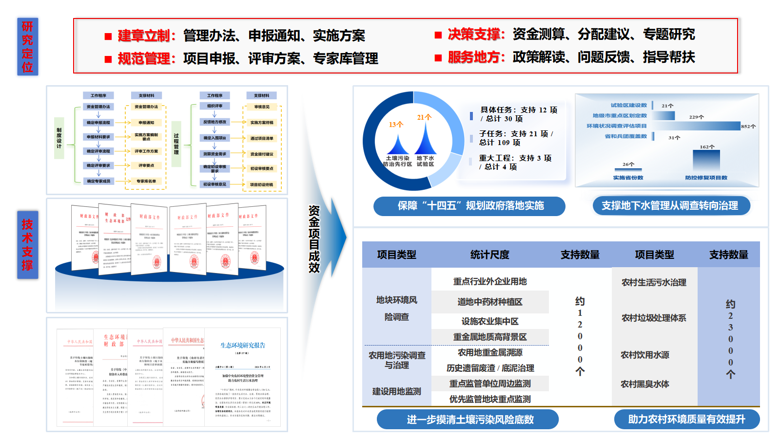 协助组织开展土壤、地下水与农业农村中央生态环境专项资金评审、使用需求测算、相关管理和技术文件起草和入库项目技术帮扶指导。承担相关领域项目库和专家库建设管理。