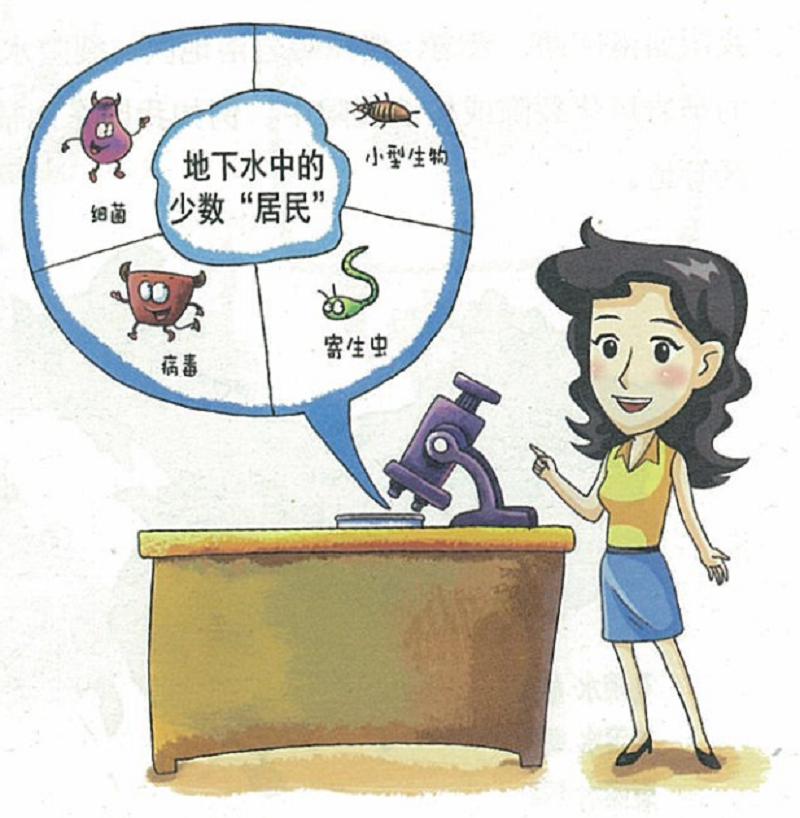 由于地下水赋存于岩土介质的空隙中,过滤作用会将大部分微生物去除,通常只有少量非常细小的微生物如细菌、病毒存在于地下水中,少数情况下会有肉眼能够观察到的寄生虫或其他小型生物。未遭受污染的地下水一般是清洁的,其中存在的少量微生物一般不会引起较大危害,我国居民饮用开水的习惯也会在很大程度上减少微生物所引起的危害。但是,被污染地下水中的细菌病毒可能引起疾病。被污染地下水中常见的一种微生物是肠道病原菌,主要来自化粪池、生活污水池、垃圾填埋场,以及污水排放系统等污染水体渗漏。